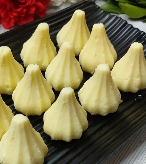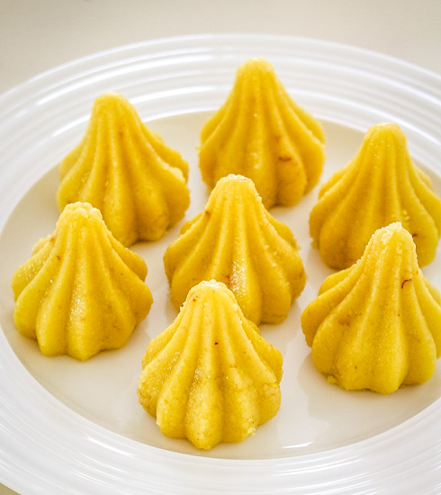 4) मिश्रण थंड झाल्यानंतर मोदकाच्या साच्याने त्याचे मोदक तयार करा.