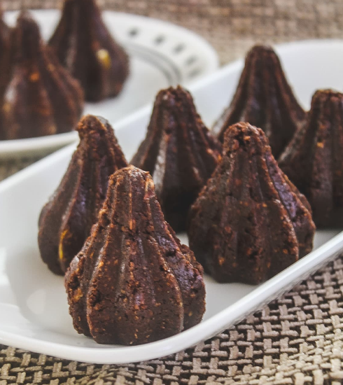 7)हे मिश्रण चिकट झाल्यावर मोदकाच्या साच्यात ठेऊन त्याचे मोदक तयार करा. हे मोदक हवाबंद डब्यात ठेवा.